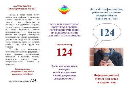· Единый телефон доверия 124 работает круглосуточно.
